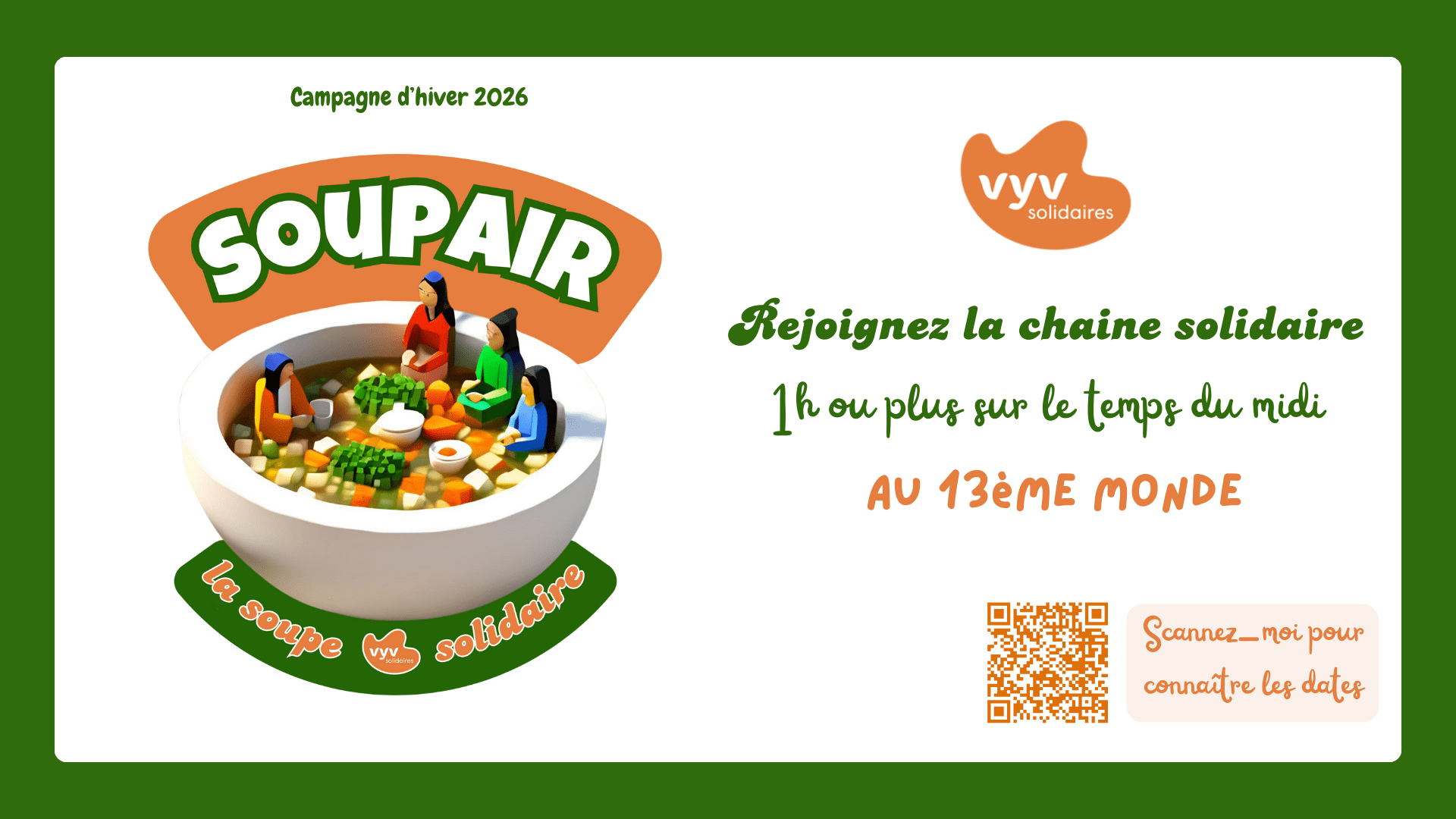 Un excellent moyen de vivre l’esprit de solidarité et d’entraide de VYV Solidaires. Venez vivre un moment extraordinaire avec VYV Solidaires et contribuer à réchauffer des ventres et des cœurs !