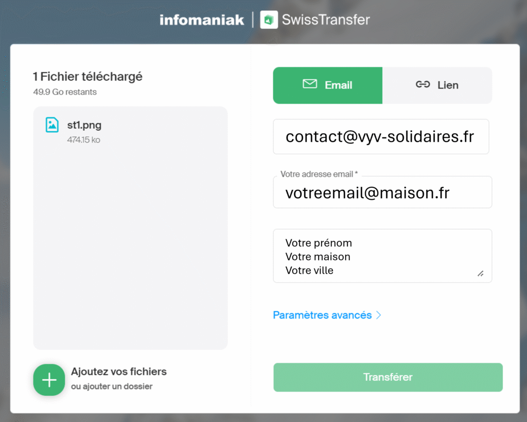 - Envoyer les fichiers à : contact@vyv-solidaires.fr